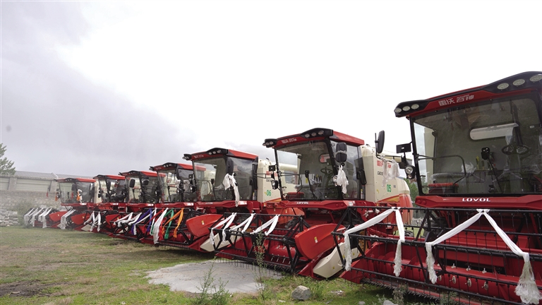 滴新社區(qū)新購置的聯(lián)合收割機。圖由乃東融媒提供