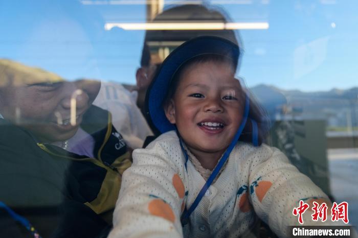 8月16日,西藏拉日鐵路通車十周年。作為連接拉薩與日喀則間的高原城際鐵路,十年來(lái),拉日鐵路運(yùn)送旅客超1429萬(wàn)人次,運(yùn)送貨物超524萬(wàn)噸。圖為16日,一位小乘客搭乘C885次動(dòng)車組列車前往日喀則。中新社記者 江飛波 攝