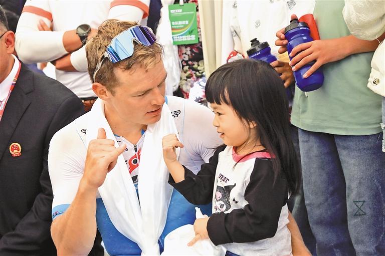 第一賽段第一名、來自飛銳蒙古洲際隊的LAAS Martin和當?shù)睾⒆踊?。記?洛桑平措 謝筱純 王珊 攝