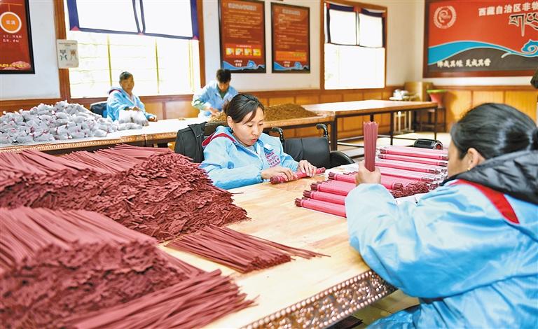 2008年6月,藏香制作技藝被列入國家級非物質(zhì)文化遺產(chǎn)名錄。經(jīng)過多年發(fā)展,藏香已成為西藏自治區(qū)極具發(fā)展?jié)摿Φ奶厣a(chǎn)業(yè)之一,越來越多的藏香加工廠吸納當(dāng)?shù)厝罕娋蜆I(yè),帶動群眾增收致富。