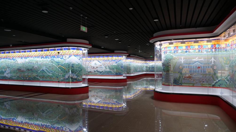 日喀則非物質文化遺產(chǎn)展示中心里展覽的新題材唐卡(2024年5月7日攝)。新華社記者 邱星翔 攝