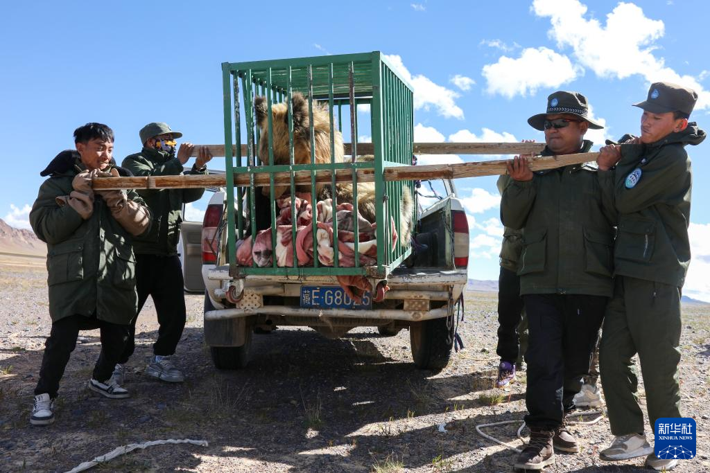 野保隊員將棕熊運送至西藏那曲市尼瑪縣的羌塘國家級自然保護區(qū)核心區(qū)(8月30日攝)。新華社記者 姜帆 攝