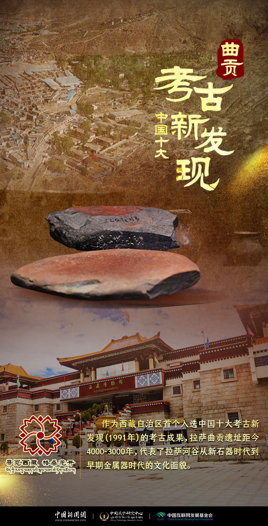卡若遺址距今約5000年左右,第一次將西藏高原史前人類生存活動的科學(xué)證據(jù)揭露于世。2021年10月,西藏昌都卡若遺址入選中國“百年百大考古發(fā)現(xiàn)”。曲貢遺址位于拉薩市北郊,距市區(qū)約五公里,是迄今在西藏發(fā)現(xiàn)的海拔最高、面積最大,文化層堆積較厚,文化內(nèi)涵極其豐富的遺址之一,被譽(yù)為拉薩的“半坡”。它們勾勒出青藏高原的文明年輪。