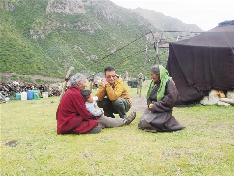 在曲桑朵村的日子里,旦增頓珠主動走進村民的生活中,幫助因學習吃力而輟學在家的學生重新進入校園,他挨家挨戶走訪勸說,并義務為他們補習功課;為了幫助因病喪失勞動力的困難戶能夠正常生活,他帶領工作隊和村里的黨員為困難戶鋤地種青稞,并輪流進行生活上的幫扶;為了保障村里的孤寡老人都能得到救濟,他積極向地方政府相關部門反映,為村里的孤寡老人爭取到了養(yǎng)老院的救助名額……走在村里,孩子們稱他為“老師”,老人們稱他為“好書記”,年輕人們稱他為“朋友”,此時的旦增頓珠儼然已成為牧民心中不可或缺的重要一員。