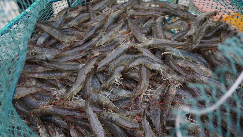 養(yǎng)殖的活蝦出塘。