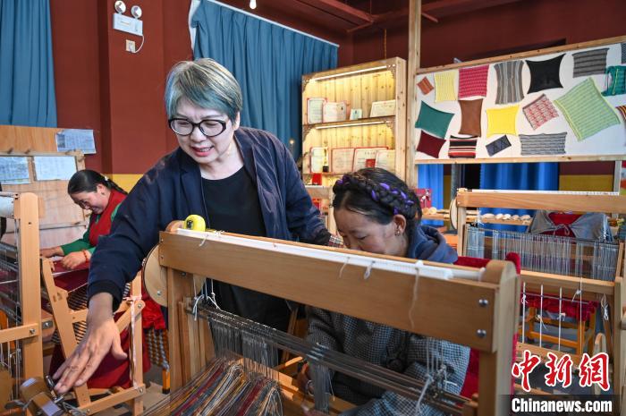 2023年,上海援藏工作隊引入“上海工匠”郭秀玲領(lǐng)銜的沙涓品牌,通過“企業(yè)+合作社+農(nóng)戶”發(fā)展模式,打造氆氌制作的“前店后坊”模式。從此,次仁吉巴等一批“阿佳”開始學(xué)習(xí)用新型工藝制作氆氌產(chǎn)品。