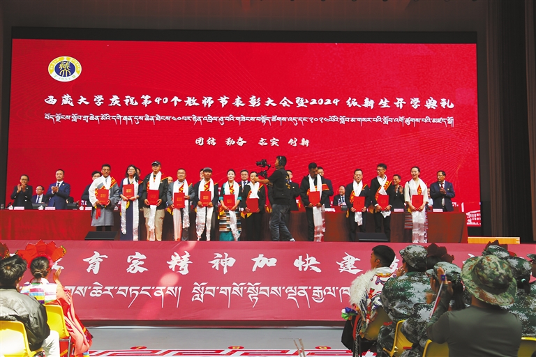 10日下午,西藏大學(xué)在納金校區(qū)雙創(chuàng)活動(dòng)中心舉辦第40個(gè)教師節(jié)表彰大會(huì)暨2024級(jí)新生開學(xué)典禮?;顒?dòng)在熱情歡快的暖場(chǎng)歌舞中拉開帷幕,會(huì)場(chǎng)內(nèi)紅旗飄揚(yáng),氣氛熱烈而莊重,全體2024級(jí)新生、學(xué)校各單位主要負(fù)責(zé)人、受表彰師生代表等共計(jì)3300余師生齊聚一堂,共同見證這一重要時(shí)刻。