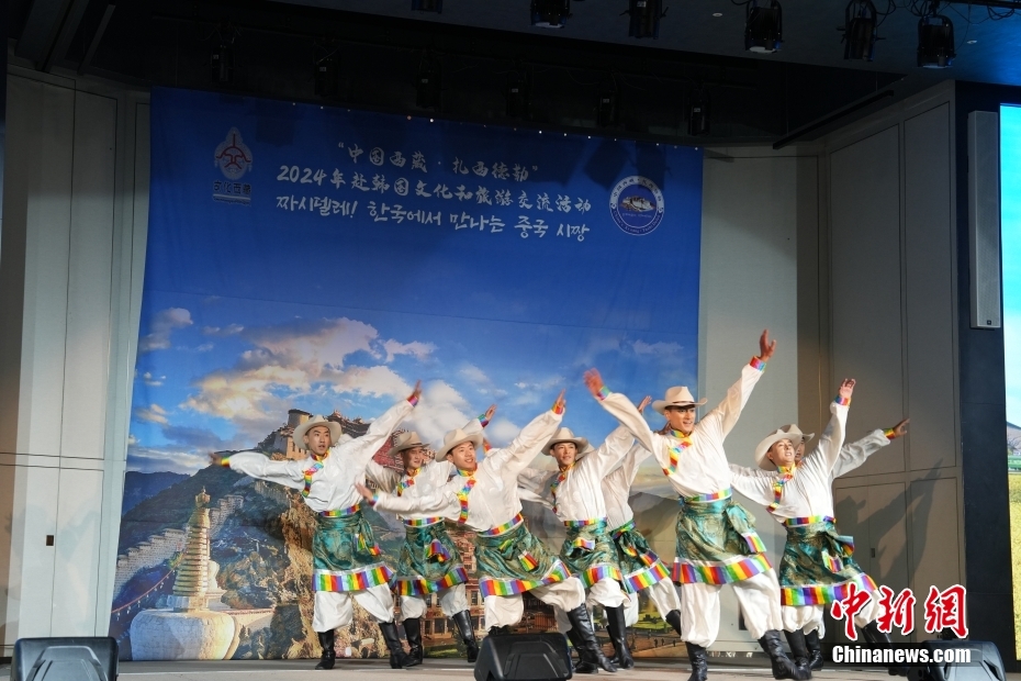 當?shù)貢r間9月25日,“中國西藏·扎西德勒”2024年赴韓國文化和旅游交流活動在首爾舉行。中國西藏自治區(qū)黨委書記王君正、中國駐韓國大使館臨時代辦方坤、韓國東亞文化中心院長盧載憲,以及韓國社會各界友好人士、在韓留學生代表等出席活動。圖為演出現(xiàn)場。