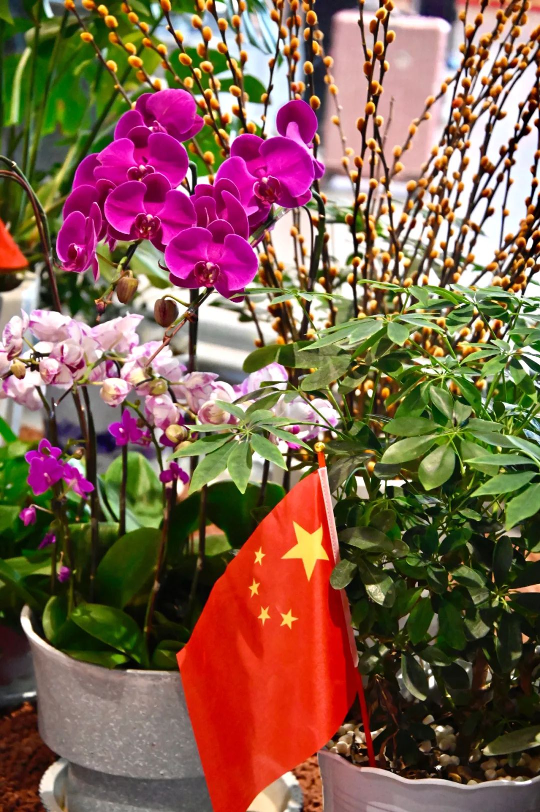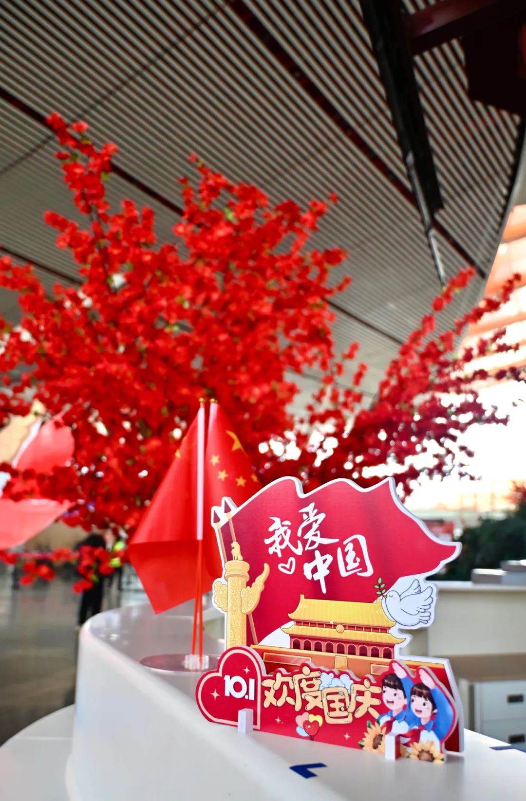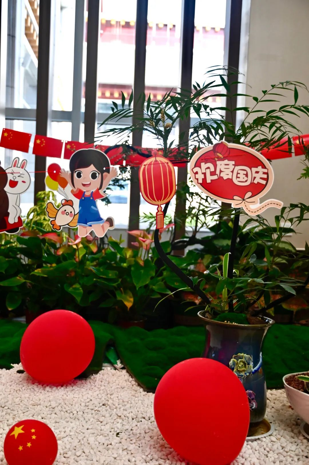 五星紅旗“我愛中國(guó)”擺件“歡度國(guó)慶”紅氣球特色花卉