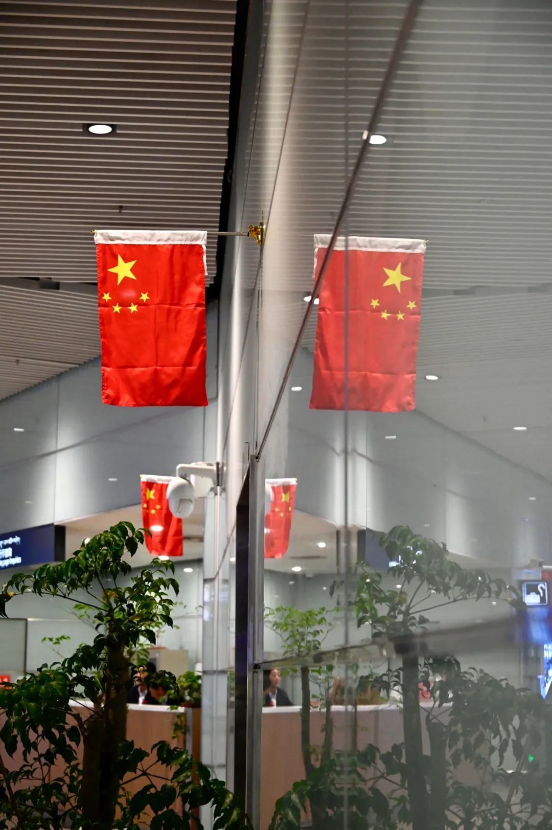 航站樓前的路燈桿上