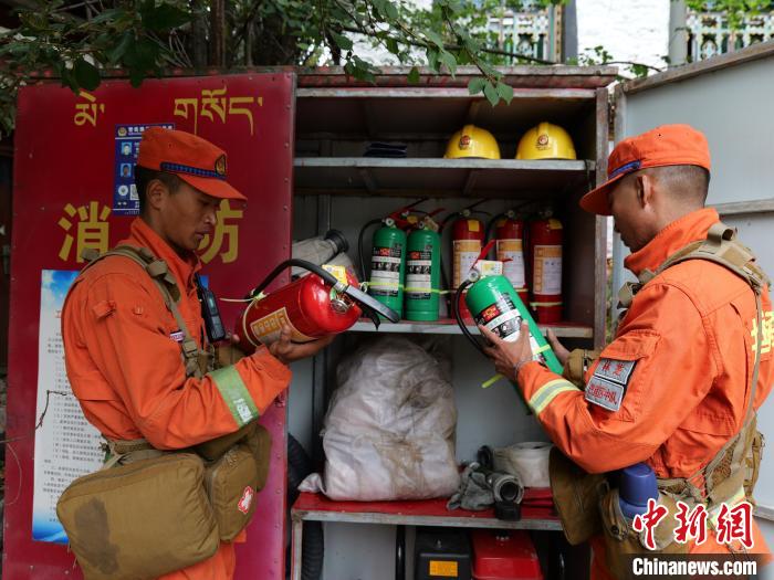 圖為檢查景區(qū)防火器材。巴宜區(qū)中隊供圖