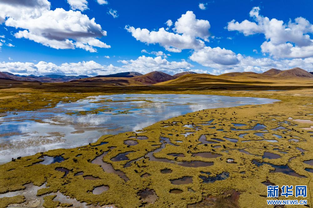 10月6日,在西藏自治區(qū)那曲市嘉黎縣境內(nèi)拍攝的牦牛(無(wú)人機(jī)照片)。新華網(wǎng) 旦增努布 攝
