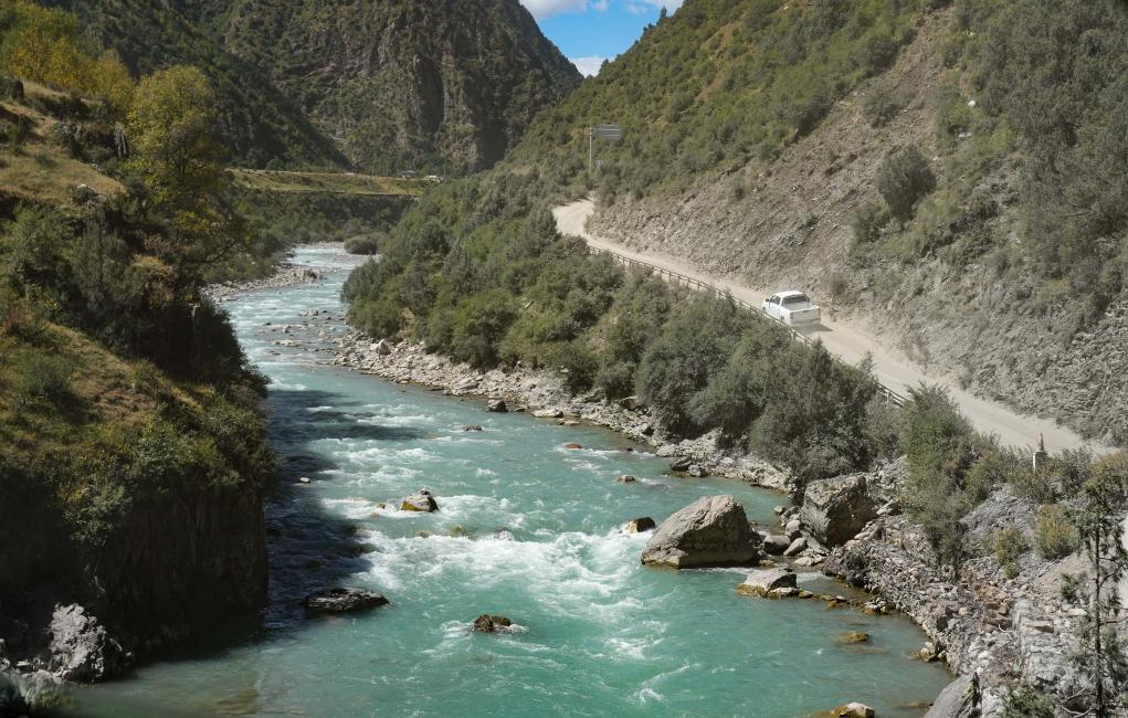 貢喬熱旦家的汽車行駛在回家的山路上(9月4日攝)。新華社記者 丁增尼達(dá) 攝