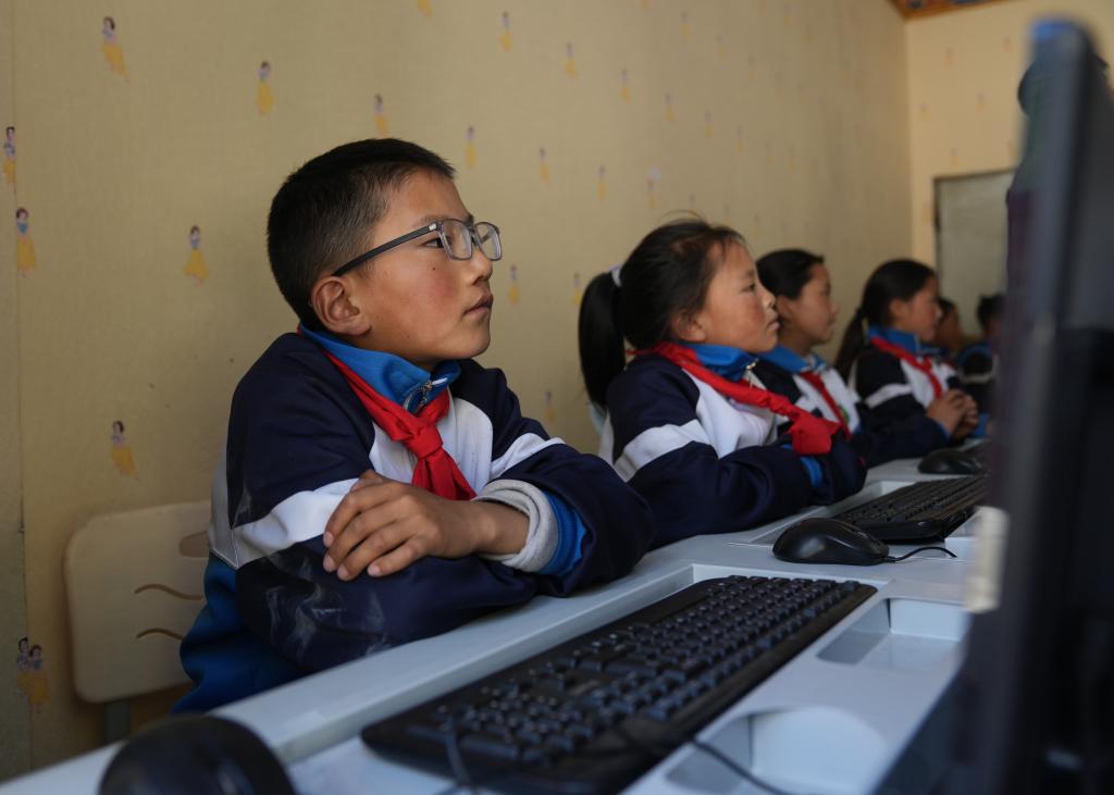 在娘蒲鄉(xiāng)中心小學(xué),貢喬熱旦在上計(jì)算機(jī)課(9月3日攝)。新華社記者 晉美多吉 攝