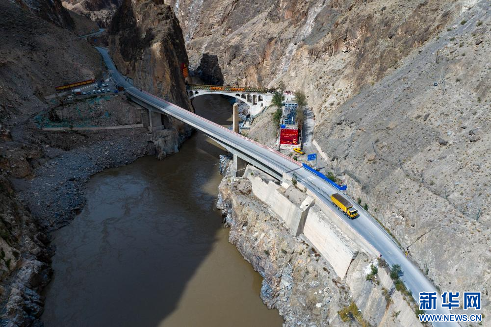 10月13日拍攝的怒江大橋(無人機照片)。新華網 旦增努布 攝