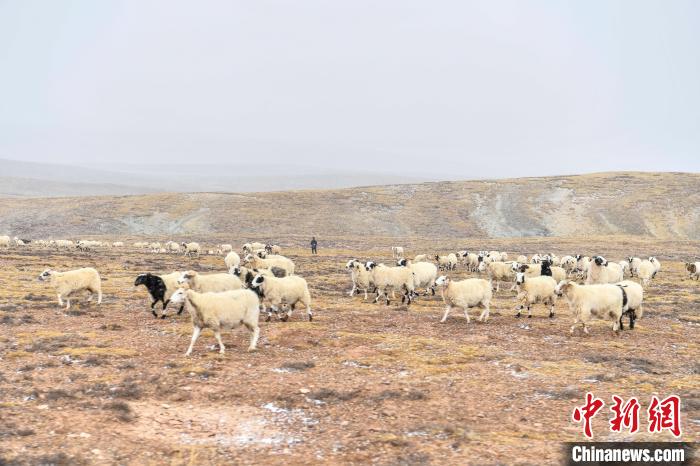 10月23日,西藏自治區(qū)那曲市安多縣多瑪鄉(xiāng)牧民在雪中放牧。當(dāng)日,一場(chǎng)雪將藏北草原裝扮得如詩(shī)如畫(huà)。牧民們?cè)谶@銀裝素裹的天地間,開(kāi)始了雪中放牧的生活。牛羊在雪地中悠閑覓食,牧民駕駛著摩托車,在雪中放牧,形成了一幅動(dòng)人的風(fēng)景畫(huà)。圖為羊群在草原上覓食。中新社記者 貢嘎來(lái)松 攝