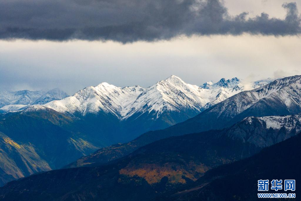 10月13日,在西藏昌都市八宿縣境內川藏公路沿途拍攝的雪山(無人機照片)。新華網(wǎng) 旦增努布 攝