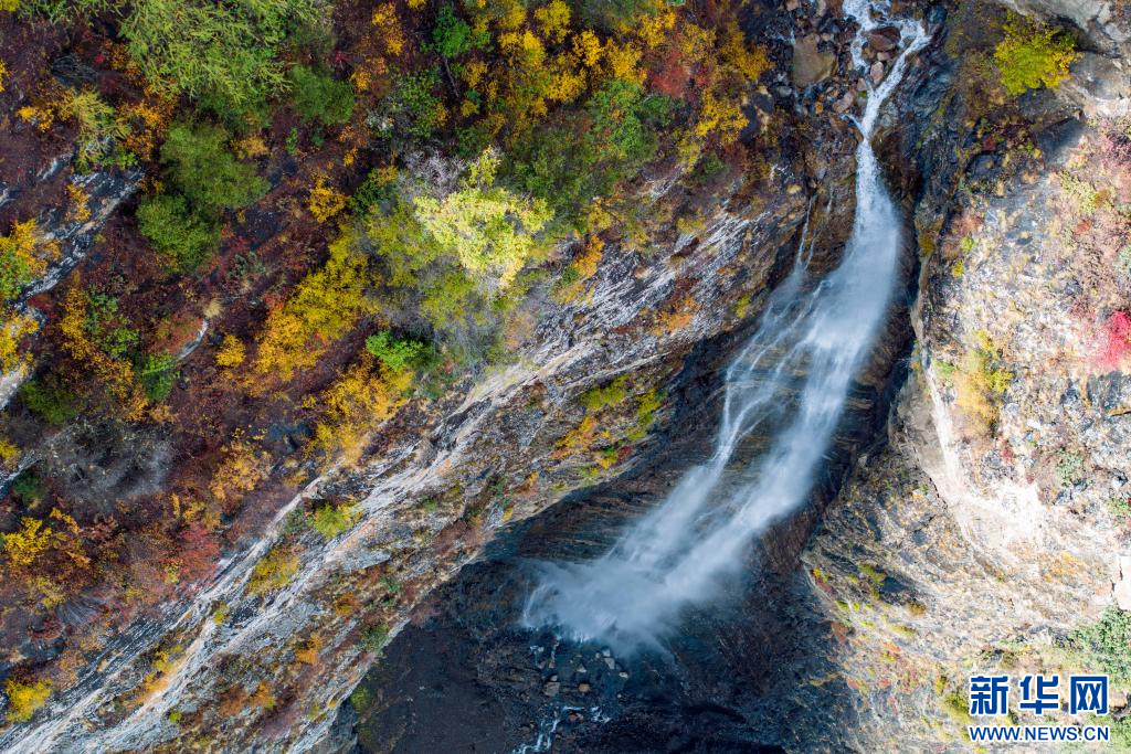 10月11日,在西藏林芝市波密縣境內川藏公路沿途拍攝的瀑布(無人機照片)。新華網(wǎng) 旦增努布 攝
