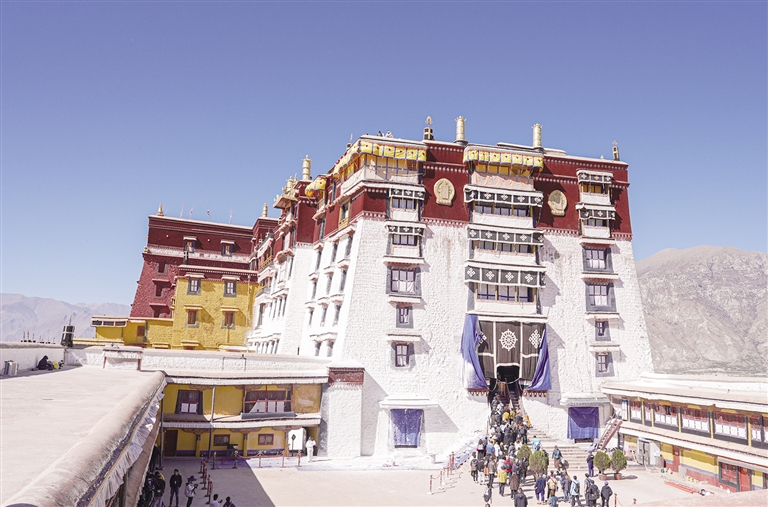 據(jù)了解,按照習(xí)俗慣例,每年藏歷九月前后,拉薩河谷地區(qū)雨季結(jié)束,天氣還沒完全變冷之前,布達拉宮就會開始一年一度的粉刷工作。從17世紀(jì)開始,粉刷布達拉宮已是300多年的傳統(tǒng)。布達拉宮每年的刷墻,是為了保護布達拉宮墻體結(jié)構(gòu),有效阻隔建筑外觀被風(fēng)吹日曬、雨水沖刷等自然侵蝕,同時也能避免外墻顏料脫落,墻體結(jié)構(gòu)老化等現(xiàn)象,確保布達拉宮建筑外觀能夠重?zé)ㄐ骂?,保持靚麗如初的顏色。