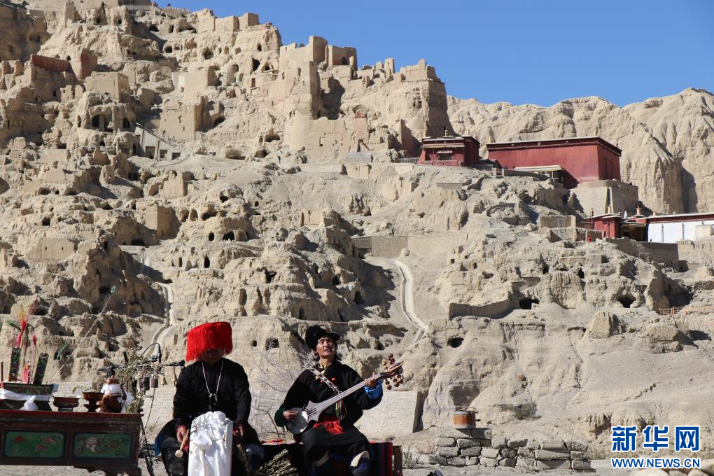 這是11月9日在古格遺址前的演奏現(xiàn)場,多名樂手正在合奏西藏傳統(tǒng)音樂。新華社 發(fā)