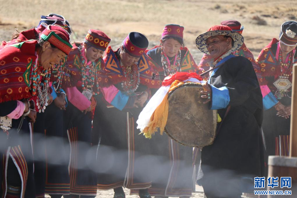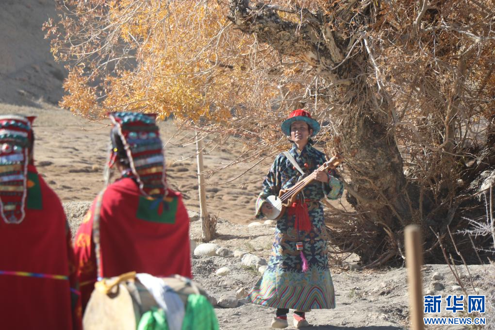 這是樂手格瑪扎西群覺身著傳統(tǒng)服飾進(jìn)行表演。新華社 發(fā)