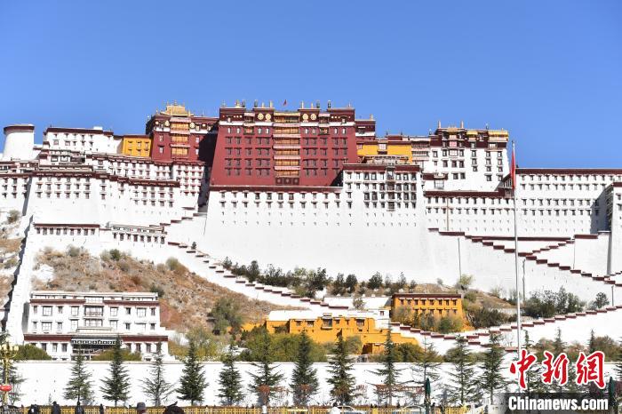 近日,西藏布達(dá)拉宮完成粉刷,呈現(xiàn)出別樣的美。粉刷后的宮墻在陽光映照下,與藍(lán)天白云相襯,顯得莊嚴(yán)肅穆。布達(dá)拉宮的粉刷,不僅是為了讓其外觀更加美觀,更重要的是能對墻體建筑起到保護(hù)作用,增強(qiáng)其防雨功能。按照慣例,布達(dá)拉宮每年藏歷九月左右開始粉刷,并且要在藏歷九月二十二日“降神節(jié)”之前完成,期間有眾多民眾,游客積極參與。布達(dá)拉宮作為世界文化遺產(chǎn),是眾多進(jìn)藏游客必去的“打卡點(diǎn)”。圖為11月8日,布達(dá)拉宮廣場。中新社記者 貢確 攝