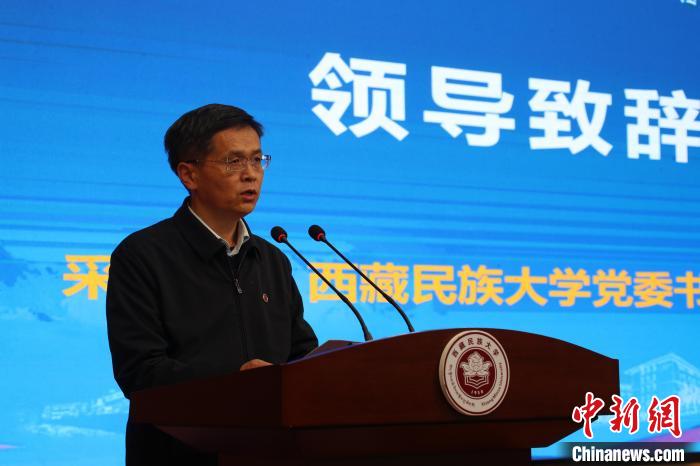西藏民族大學(xué)黨委書記、副校長(zhǎng)采守寬在第四屆“藏秦·喜馬拉雅”論壇開幕式發(fā)表致辭。主辦方供圖