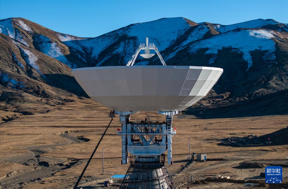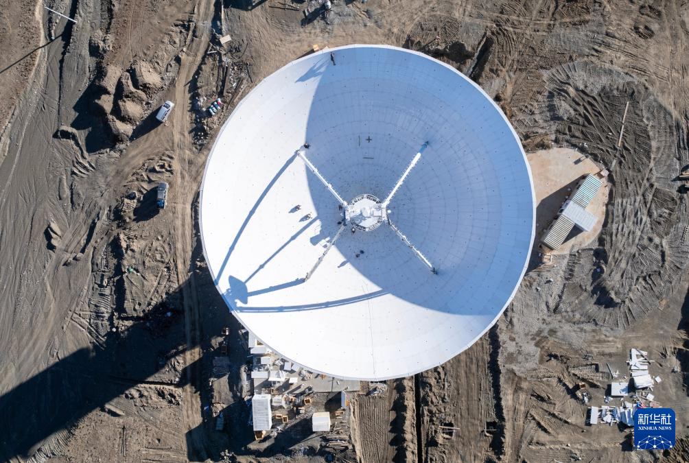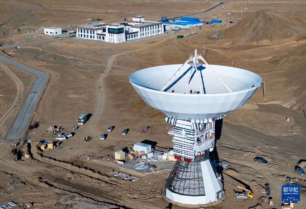 建設(shè)中的日喀則40米射電望遠(yuǎn)鏡(無(wú)人機(jī)照片,11月7日攝)。新華社記者 姜帆 攝