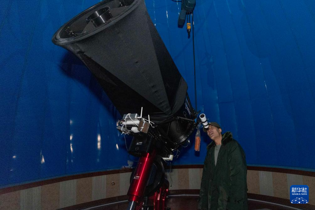 國(guó)家天文臺(tái)阿里觀測(cè)站工作人員尤顯龍?jiān)谡{(diào)試望遠(yuǎn)鏡(11月16日攝)。新華社記者 姜帆 攝