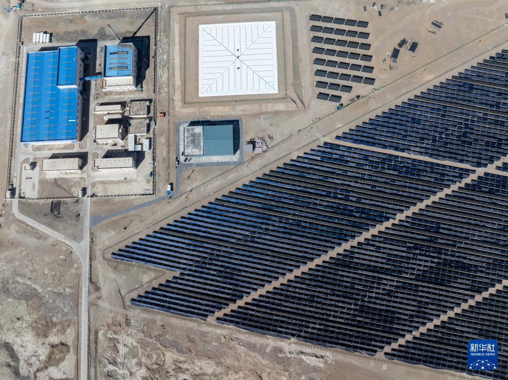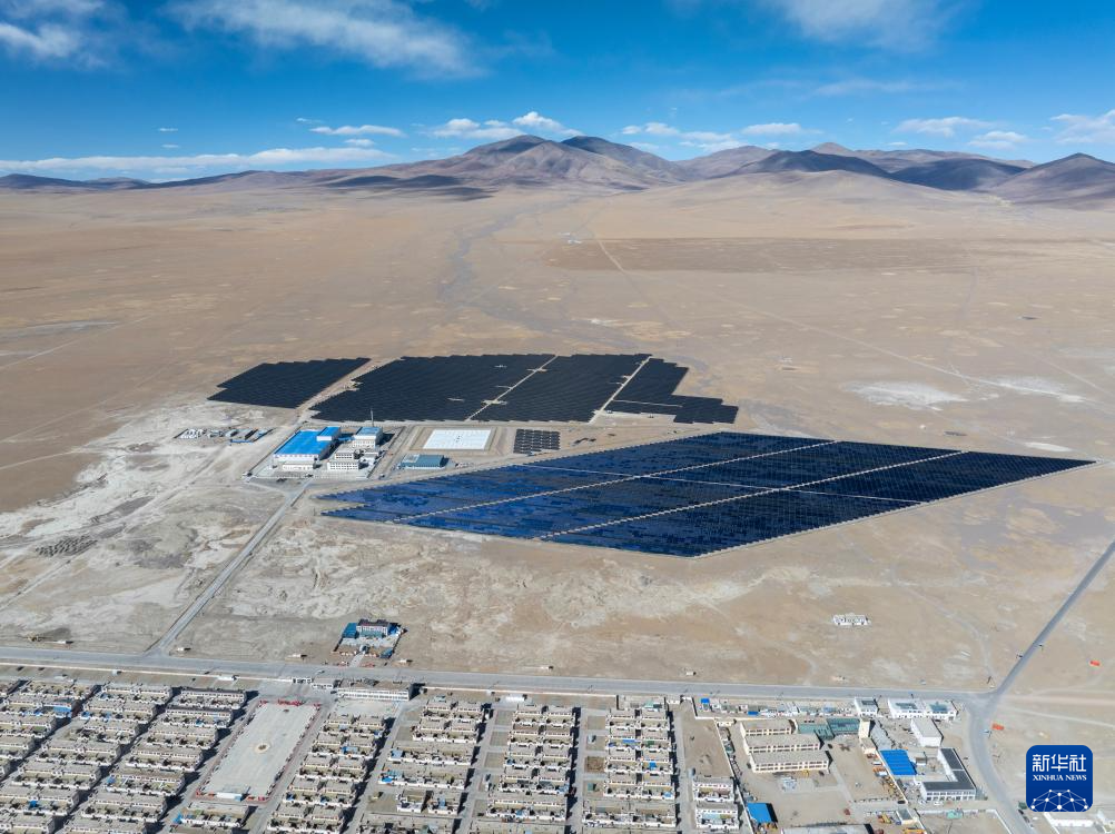 鳥瞰措勤縣城區(qū)清潔能源集中供暖特許經(jīng)營(yíng)項(xiàng)目的光伏陣列(無(wú)人機(jī)照片,11月20日攝)。新華社記者 姜帆 攝