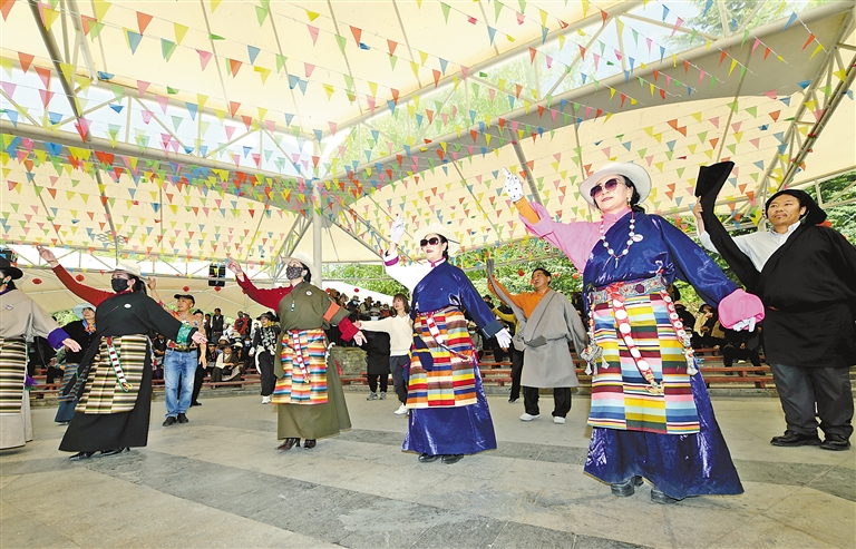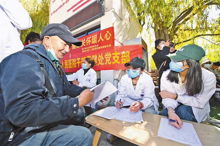 拉薩市策門林社區(qū)居民委員會(huì)聯(lián)合自治區(qū)人民醫(yī)院干部保健處黨支部在宗角祿康公園開(kāi)展義診活動(dòng)。記者 唐斌 攝