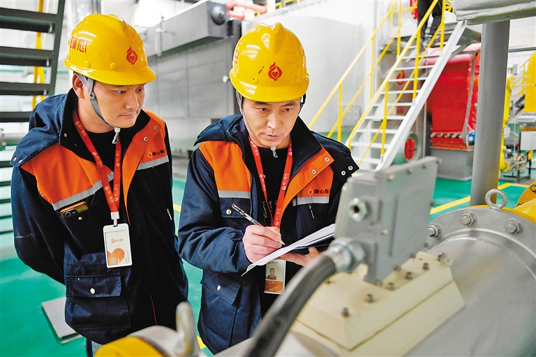 拉薩市暖心燃?xì)鉄崃τ邢挢?zé)任公司工作人員在鍋爐房?jī)?nèi)檢查設(shè)備運(yùn)行情況。記者 王敏 攝