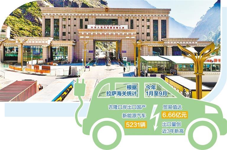 在位于日喀則市的吉隆口岸,裝載著一輛輛國(guó)產(chǎn)新能源汽車的大卡車正緩緩駛出國(guó)門,駛向尼泊爾。今年以來,新能源汽車出口形勢(shì)良好,貿(mào)易值屢創(chuàng)新高,成為西藏外貿(mào)新的增長(zhǎng)點(diǎn)。根據(jù)拉薩海關(guān)統(tǒng)計(jì),今年1月至9月,吉隆口岸出口國(guó)產(chǎn)新能源汽車5231輛,貿(mào)易值達(dá)6.66億元,出口量創(chuàng)近3年新高。