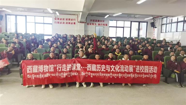 在拉薩市城關區(qū)教育局、拉薩市堆龍德慶區(qū)教育局的積極支持和各個學校的大力配合下,此次活動從12月4日開始,將陸續(xù)在拉薩市堆龍德慶區(qū)、城關區(qū)相關中小學校開展。此次流動展將西藏博物館榮獲全國十大精品陳列特別獎的基本陳列《雪域長歌——西藏歷史與文化》《離太陽最近的人——西藏民俗文化》通過大屏幕呈現在廣大青少年兒童面前,由專業(yè)講解員對一件件精品文物進行解讀,將悠久的歷史和璀璨的文化呈現給廣大師生。