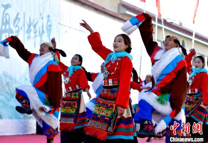 圖為第三屆“鄉(xiāng)村振興 那曲奮進”成果轉化暨第十八屆畜產品展銷會開幕式上的文藝演出。李林 攝