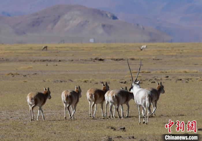 圖為12月8日,棲息在魯確塘草原的藏羚羊。中新社記者 李林 攝