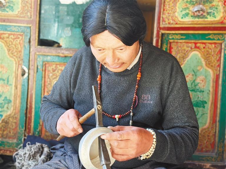 在嘎瑪鄉(xiāng),傳承的信念猶如種子般深深地植入進(jìn)了每一個(gè)技師的心中,并且不斷生根發(fā)芽。如今,像丁巴曲培、嘎瑪次仁這樣的家庭式手工作坊在嘎瑪鄉(xiāng)多達(dá)200余個(gè),并且還在不斷發(fā)展壯大。這一切,離不開(kāi)世代傳承人付出與堅(jiān)守,更離不開(kāi)黨和政府的大力支持。