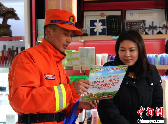 圖為西藏森林消防總隊林芝支隊巴宜區(qū)中隊元旦假期防火專項行動中開展流動宣傳。西繞拉翁 攝