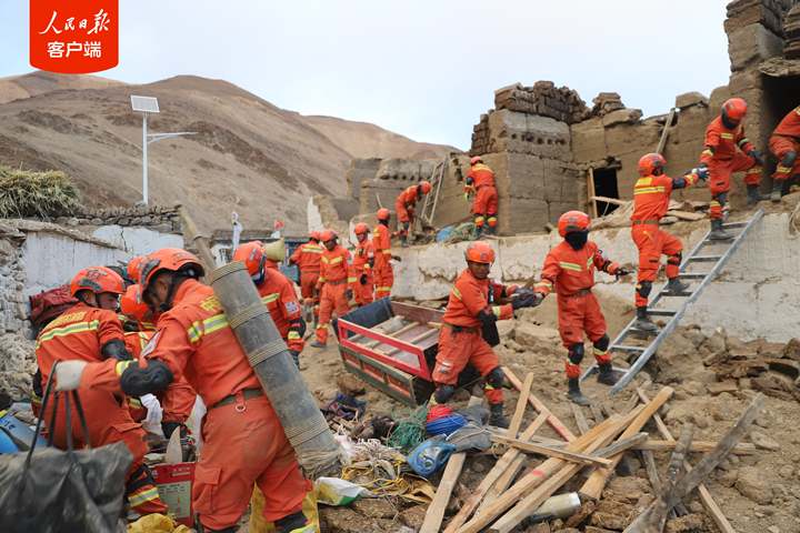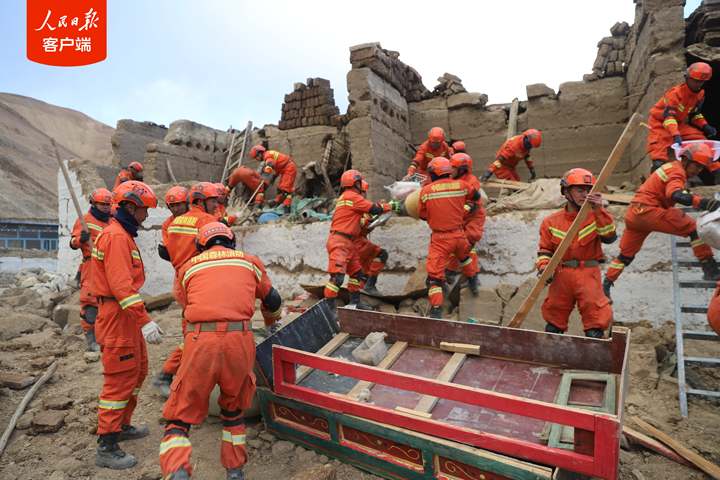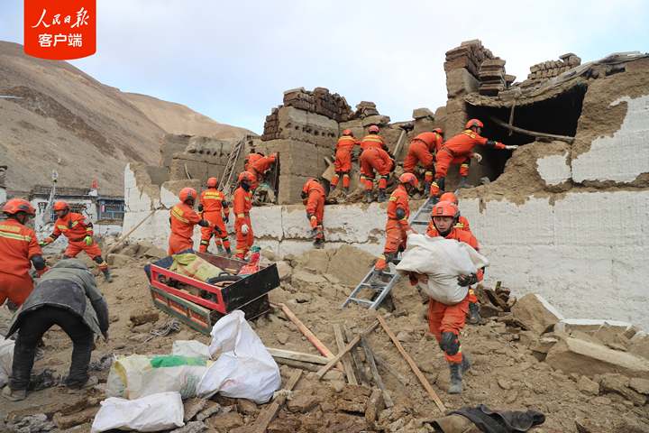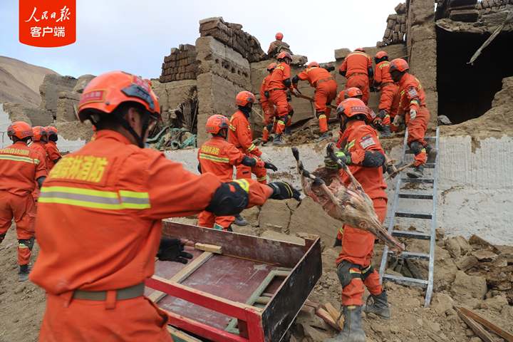 1月7日,西藏日喀則市定日縣發(fā)生6.8級地震后,西藏森林消防總隊指戰(zhàn)員第一時間趕赴受災嚴重的措果鄉(xiāng)野江村展開救援。救援人員把埋在廢墟里的牦牛和生活物資搶救出來后,村民雙手合十,真誠感謝黨和國家,感謝救援人員。