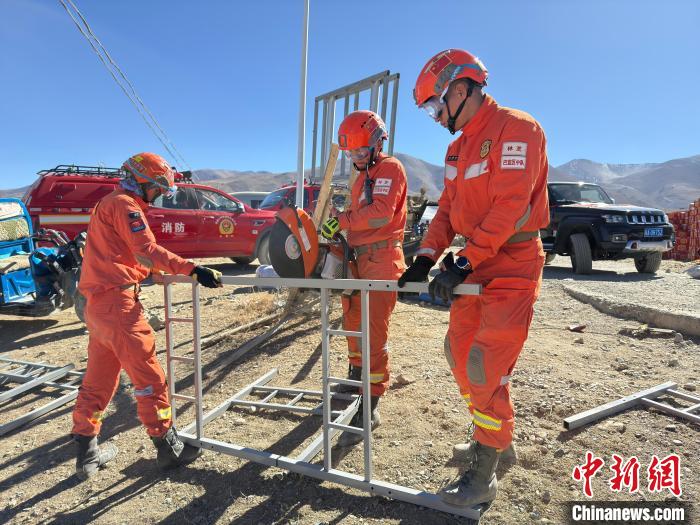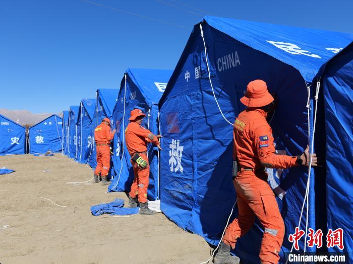 圖為消防指戰(zhàn)員正在搭設(shè)帳篷。西繞拉翁 攝