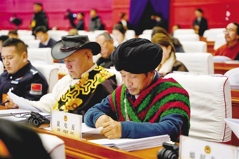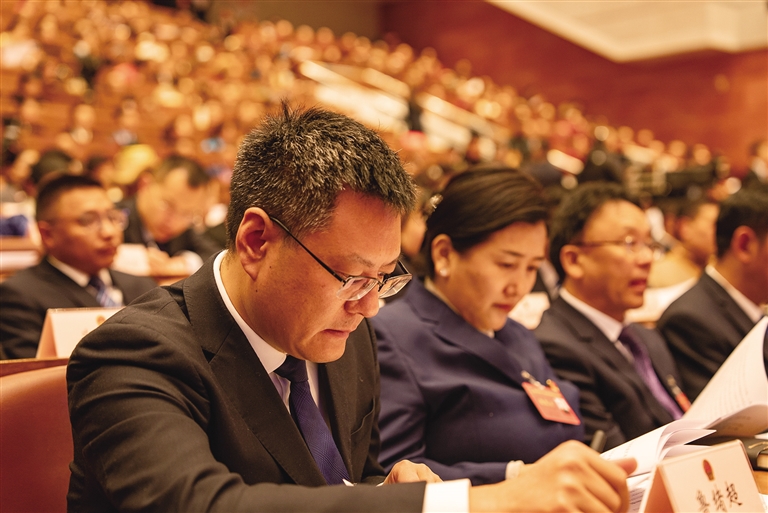與會(huì)人員認(rèn)真聆聽(tīng)政府工作報(bào)告。
