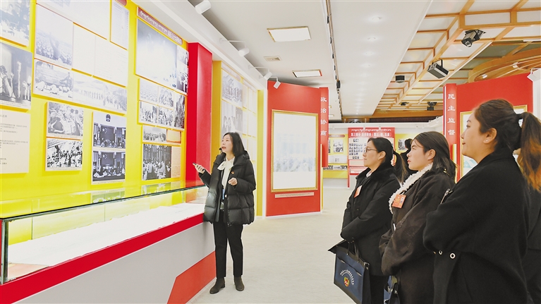 圖為1月21日,委員們在政協(xié)西藏自治區(qū)委員會黨員干部基地參觀西藏政協(xié)歷史展。 記者 曲珍 攝