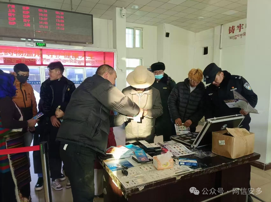 2025年1月23日,在蛇年春節(jié)返鄉(xiāng)潮的高峰,安多縣普法辦聯(lián)合縣禁毒辦在安多火車站開展以“佳節(jié)返鄉(xiāng)潮,普法不停步,在車站點亮法治之光”為主題的宣傳活動,為歸心似箭的旅客們送上了一份特殊的“法律年貨”。
