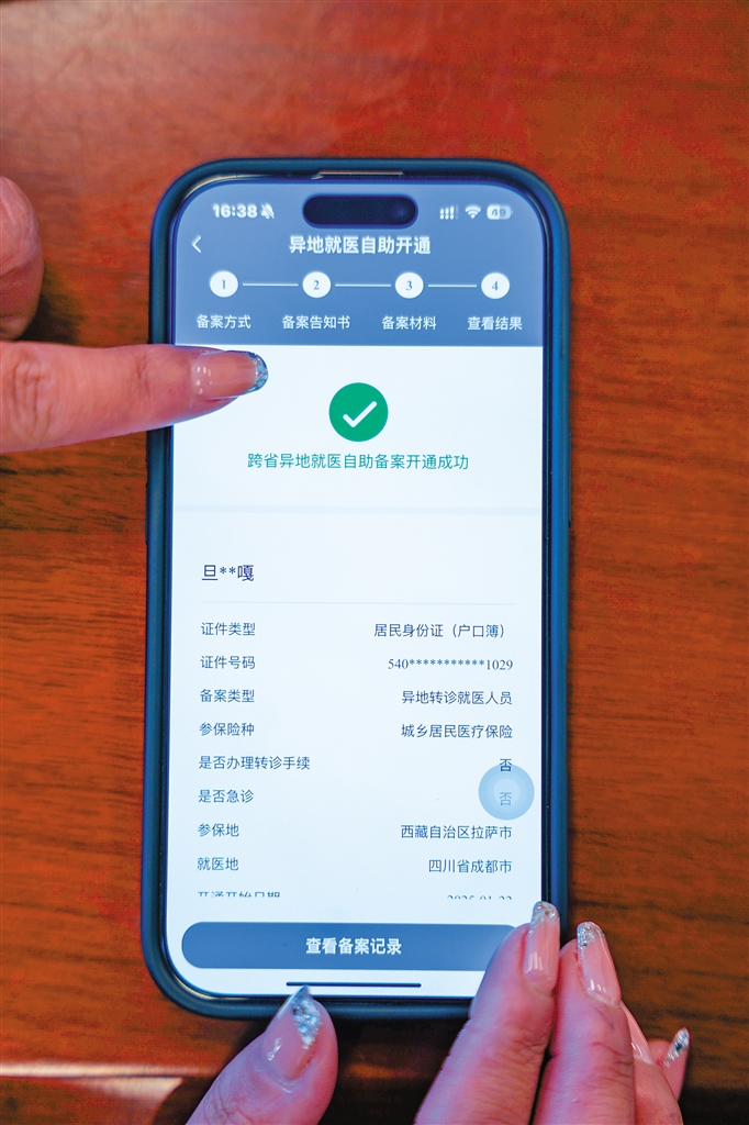 跨省異地就醫(yī)自助備案通過手機(jī)小程序開通成功。記者 貢曲羅杰 攝