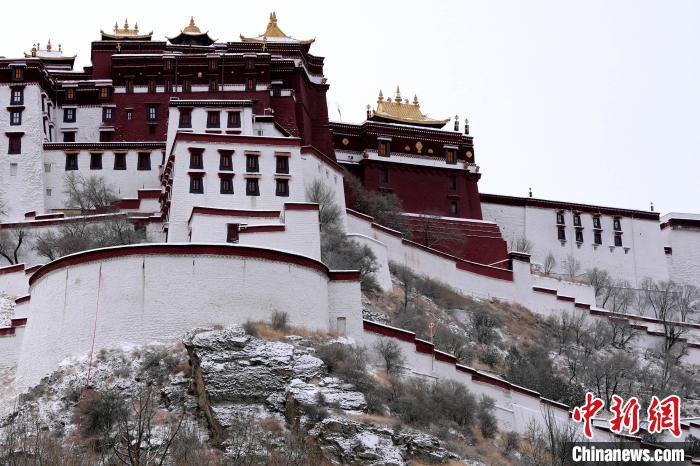 2月19日,西藏拉薩經(jīng)過持續(xù)降雪,城市四周白雪皚皚。雪山、建筑相映成景、風(fēng)光秀麗。圖為2月19日,雪后布達(dá)拉宮。中新社記者 李林 攝