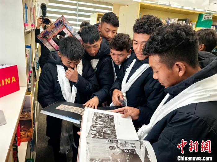 2月20日,參加“跨越山海 以球會(huì)友”藏港青少年足球交流活動(dòng)的西藏自治區(qū)青少年在香港中華基金會(huì)中學(xué)圖書館翻閱介紹西藏的圖冊。 中新社記者 劉大煒 攝