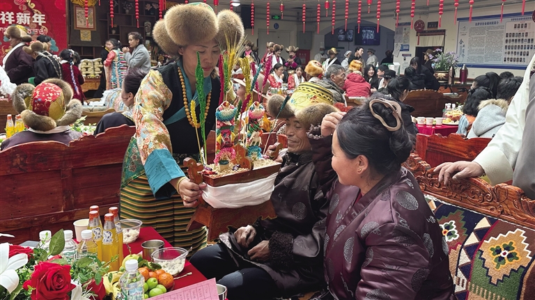 拉薩市社會福利院工作人員白央告訴記者,藏歷新年前一周,她們就為老人們洗澡、修剪指甲,對福利院進行全面大掃除。為營造節(jié)日氛圍,還提前為老人裝扮居住環(huán)境,掛上紅燈籠,擺上切瑪盒等?!斑@是我在福利院工作的第二年。藏歷新年雖不能陪伴在父母身邊,但與老人們一同過年,讓我深感幸福且意義重大?!?/p>