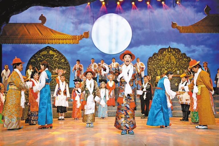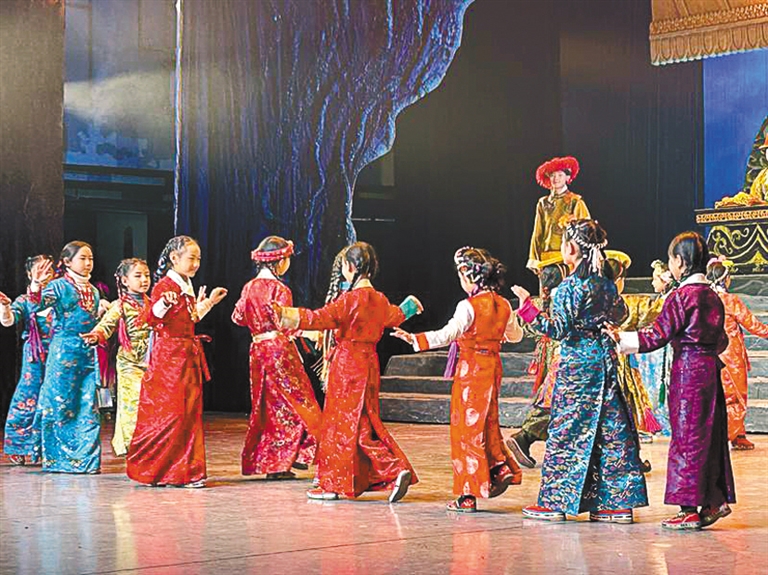 用少兒舞臺劇藏戲《頓月頓珠》導(dǎo)演之一云登羅布的話說:“從最初的‘摸著石頭過河’,到2023年雪頓節(jié)首演大獲成功,再到如今公演,主創(chuàng)團隊對孩子們的要求再度提升——要在表演細(xì)節(jié)上做功課,在舞臺上真唱真說真情表演。他們都做到了,他們是了不起的!”