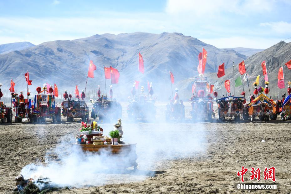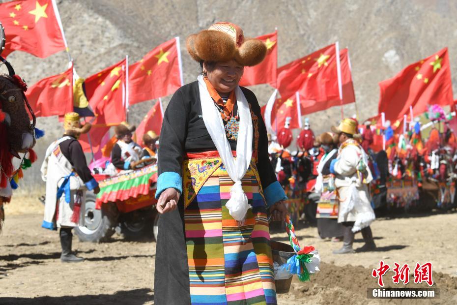 3月16日,西藏拉薩迎來(lái)一年一度的傳統(tǒng)春耕儀式。當(dāng)日,拉薩市曲水縣色達(dá)村村民身著節(jié)日盛裝,相聚在田間,載歌載舞,共同迎接春耕第一犁。家家戶戶端著自家的“切瑪”(象征五谷豐登)帶著青稞酒、酥油茶等物品聚在田間,互敬青稞酒,開始撒種,祈求全年風(fēng)調(diào)雨順、五谷豐登。圖為曲水縣色達(dá)村春耕儀式現(xiàn)場(chǎng)。中新社記者 貢嘎來(lái)松 攝