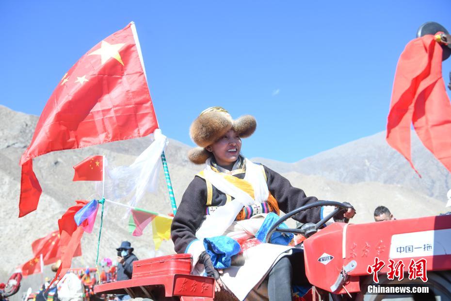 3月16日,西藏拉薩迎來(lái)一年一度的傳統(tǒng)春耕儀式。當(dāng)日,拉薩市曲水縣色達(dá)村村民身著節(jié)日盛裝,相聚在田間,載歌載舞,共同迎接春耕第一犁。家家戶戶端著自家的“切瑪”(象征五谷豐登)帶著青稞酒、酥油茶等物品聚在田間,互敬青稞酒,開始撒種,祈求全年風(fēng)調(diào)雨順、五谷豐登。圖為曲水縣色達(dá)村春耕儀式現(xiàn)場(chǎng),當(dāng)?shù)孛癖姳硌輫?guó)家級(jí)非物質(zhì)文化遺產(chǎn)《吉祥仲孜》。中新社記者 貢嘎來(lái)松 攝